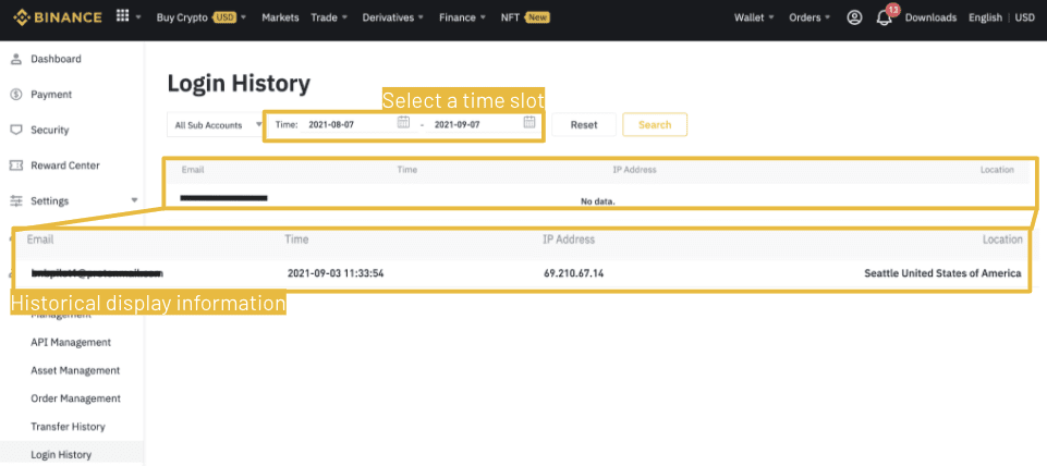 Login History: You can check all sub-account login history by date, IP address, and location.