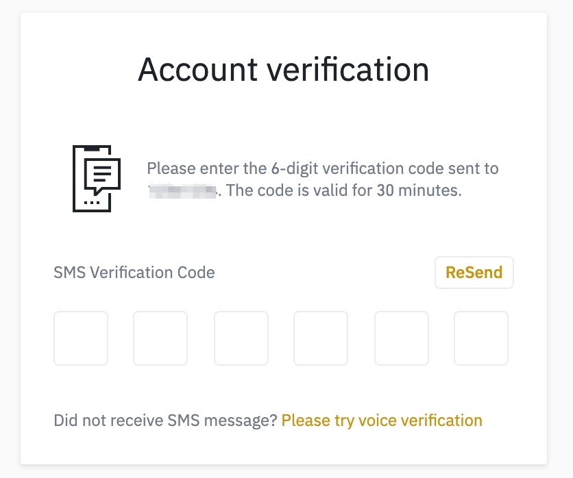 4. The system will send an SMS verification code to your mobile phone. Please enter the 6-digit verification code within 30 minutes. If you can’t receive it, click [Resend], or click [Please try voice verification] to use voice verification instead.
