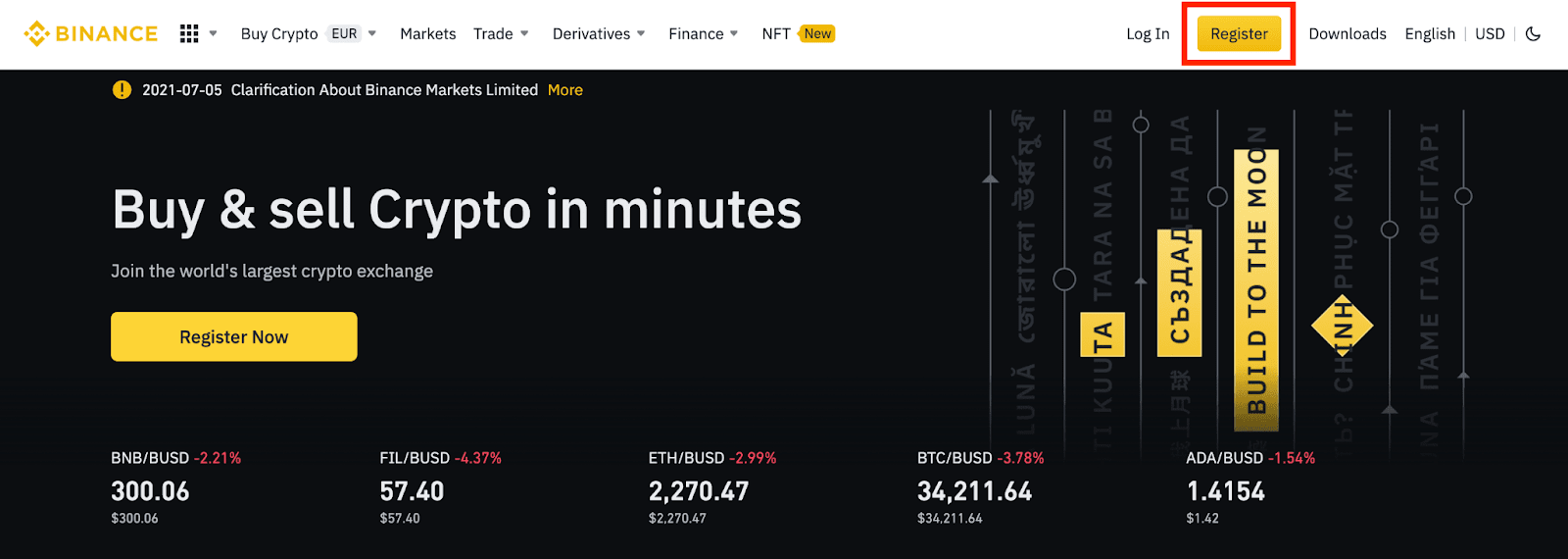 1. Go to Binance.com and click [Register].