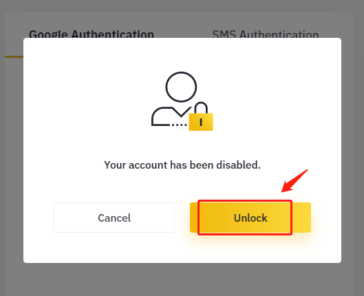 Please visit https://www.binance.com and Log In to your account. You should see this dialog box. Click the【Unlock】button to start the account reactivation process.