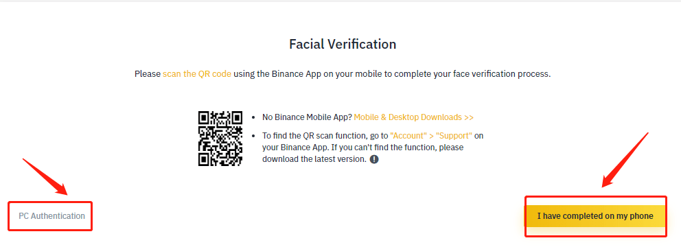 Go through the process by scanning the QR code with the Binance mobile app on Android or iOS.