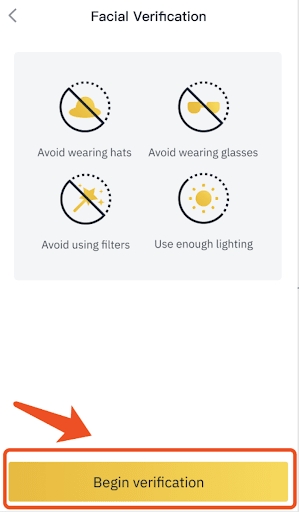 Facial verification:Please pay attention to the tips and click on [Begin Verification].