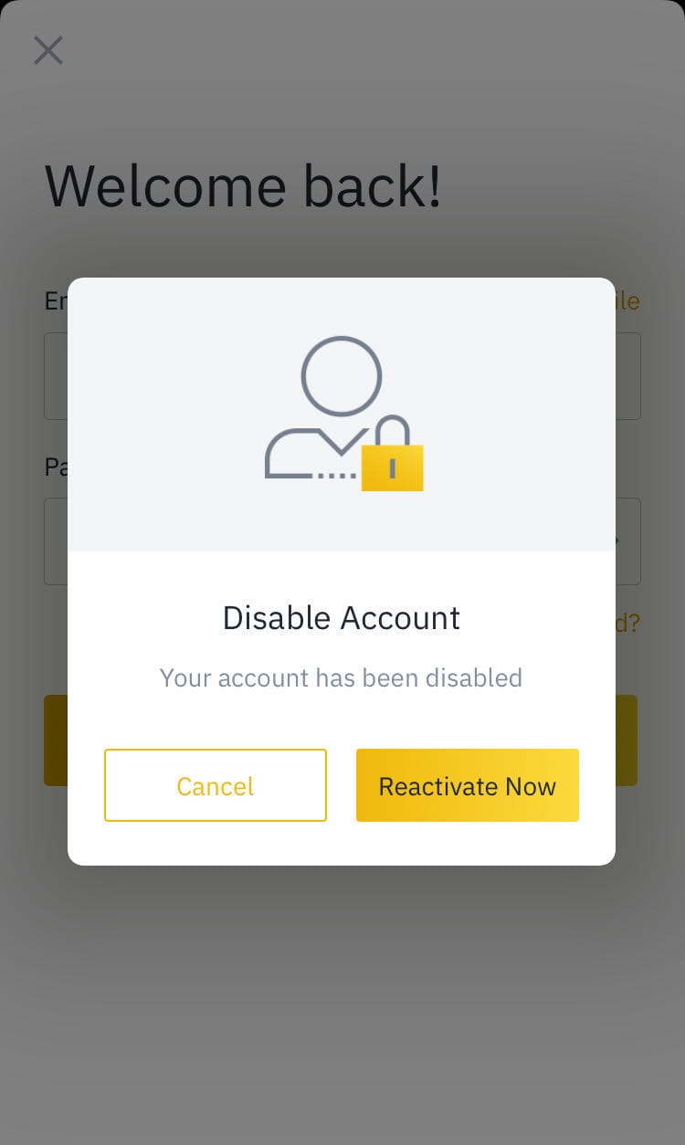 Open the Binance app, enter your account information, and click [Log in]. If you have already enabled security verification, you may click [Get code] and enter all the required codes. Then, click [Reactive Now] to start the account reactivation process.