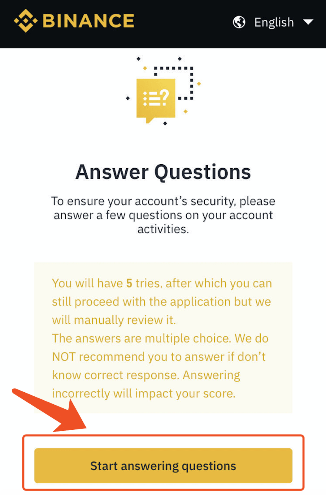 4. After clicking on [Submit], please follow the instructions to complete the different forms of verification below:Note: Different users will perform different operations based on account status and related information.Answering Security Questions:Please read the instructions carefully before clicking on [Start answering questions].