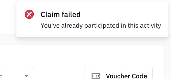 3. Once a voucher code is successfully redeemed, you can check and use the corresponding voucher(s) in the Reward Center. Please note that one voucher code can only be redeemed once, and a voucher code cannot be redeemed once expired(promotion ended). If you didn't meet the redeem criteria of this code, there will be alerts to tell you to check the promotion rules further.