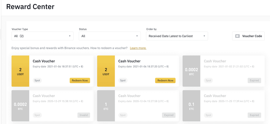 5. Here in the Reward Center you’ll have an overview of all the vouchers you are able to redeem. Simply click [Redeem Now] before the expiry date to receive your reward.