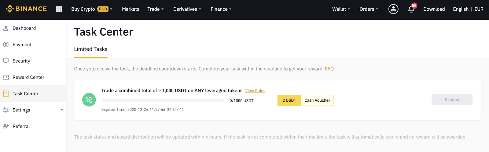 Note: Direct link to the task center: https://www.binance.com/en/my/task/list