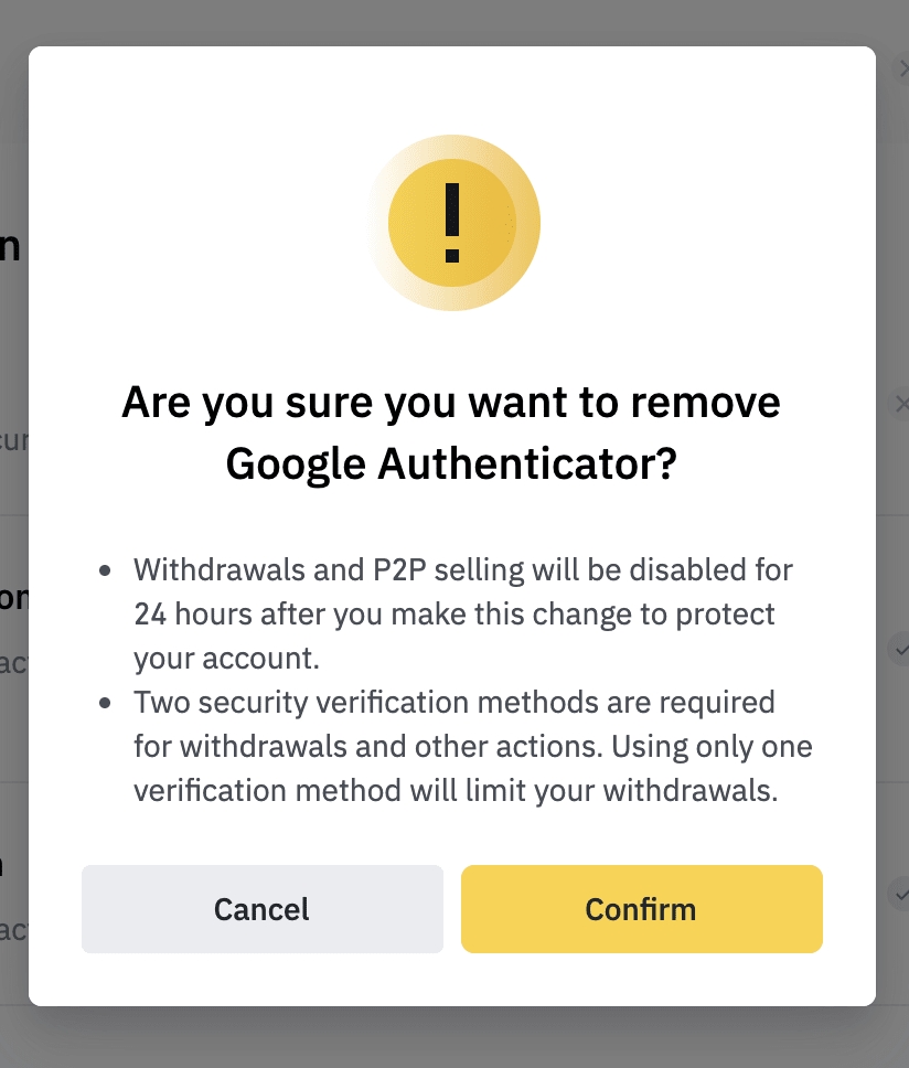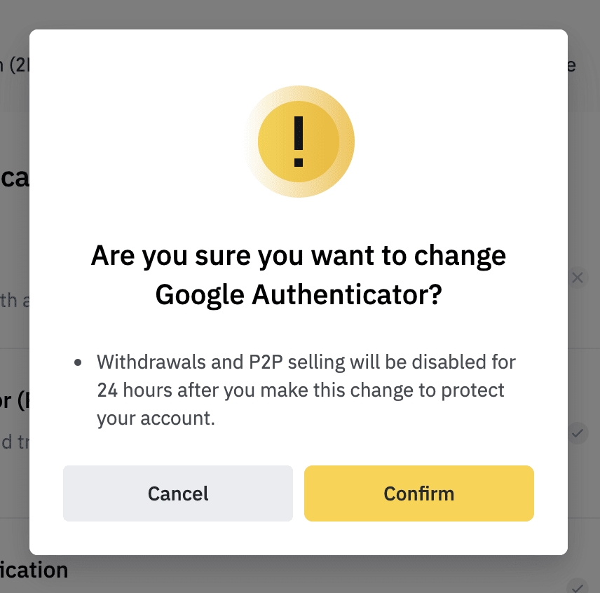 Please note that withdrawals and P2P selling will be disabled for 24 hours after you make this change.3.1. If you clicked [Change]:Read the notes carefully and click [Confirm].