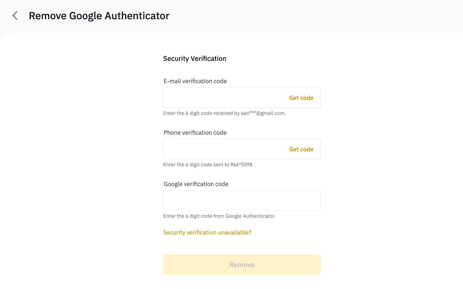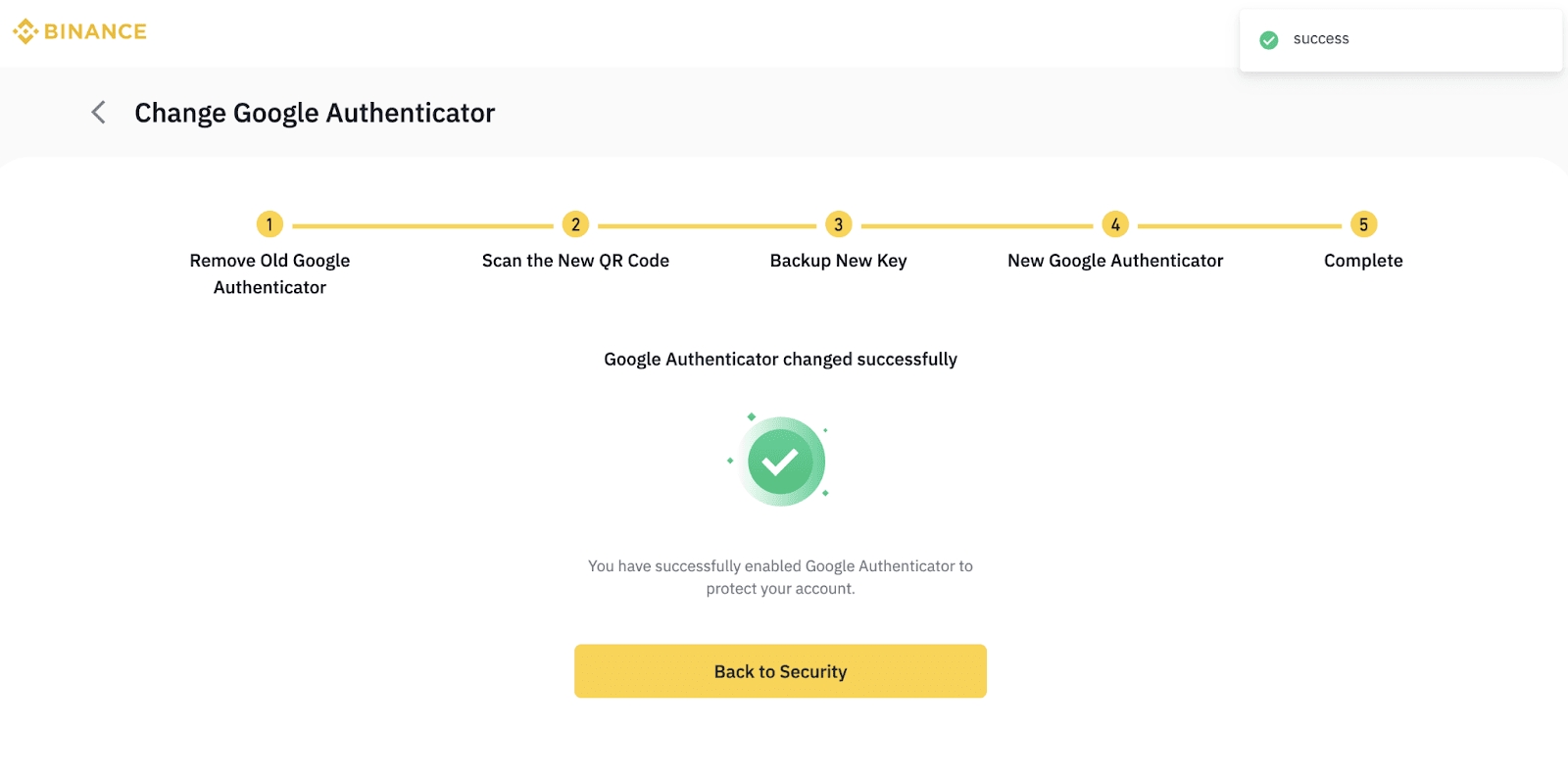 Your Google Authenticator is successfully removed. Click [Back to Security].