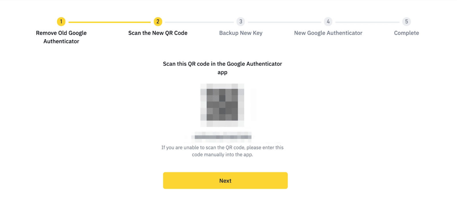 Scan the QR code with your Google Authenticator app. If you are unable to scan it, enter the code manually in the app and click [Next].