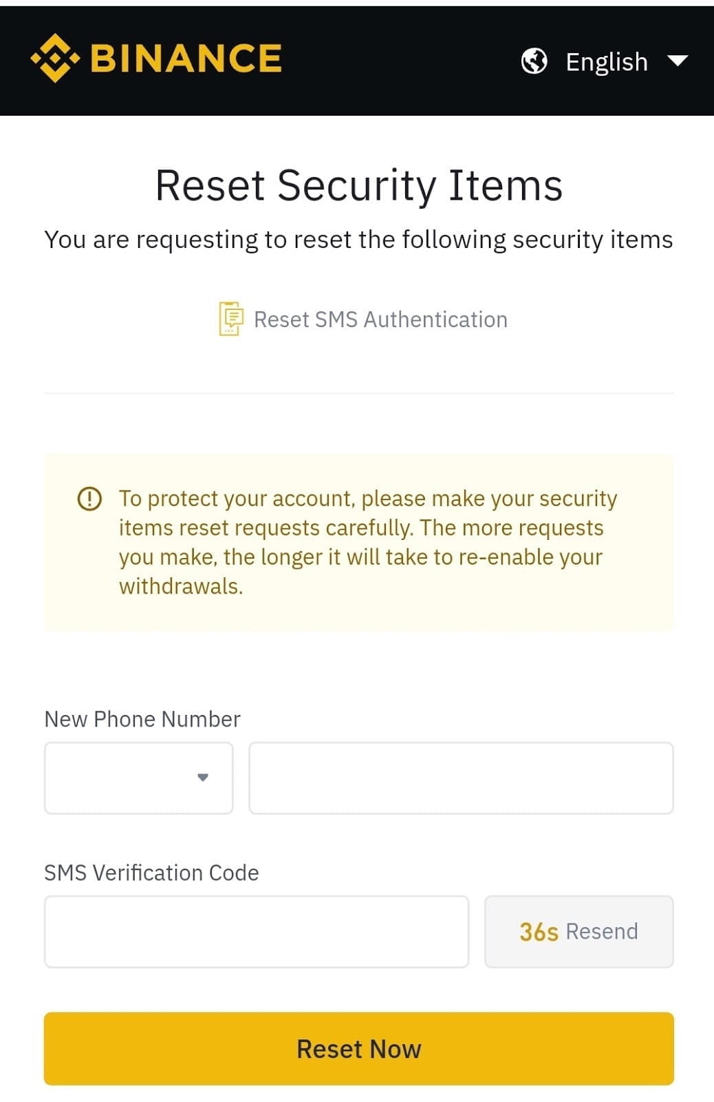 4. Enter your new phone number and tap [Get Code] to get an SMS verification code. Please note that your original phone number cannot be used again. Tap [Reset Now].