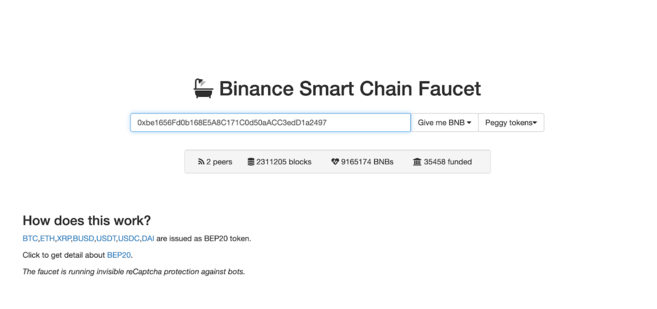 Let’s stick to BNB for now. Click on the Give me BNB dropdown and select the amount you wish to receive. You might need to wait a couple of minutes, but the funds will show up in your testnet wallet imminently.